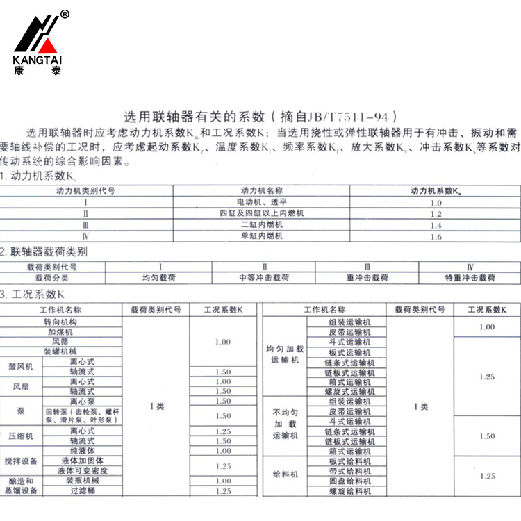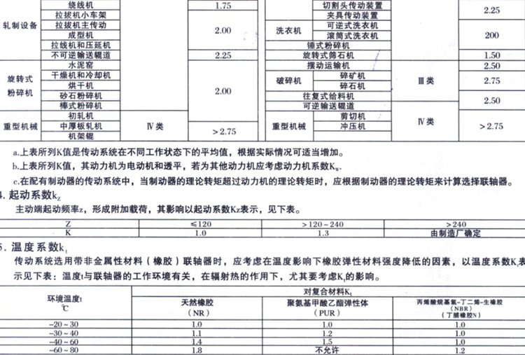 選用聯(lián)軸器有關(guān)的系數(shù)