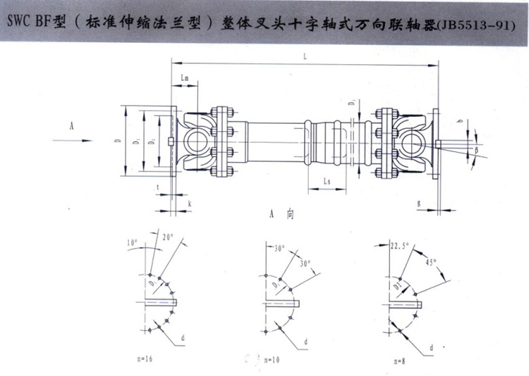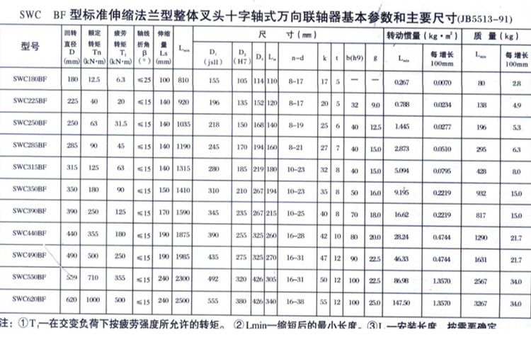 SWC BF型(標準伸縮法蘭型)整體叉頭十字軸式萬向聯(lián)軸器