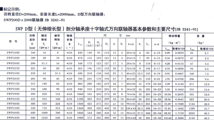 SWP D型(無伸縮短型)部分軸承座十字軸式萬向聯(lián)軸器