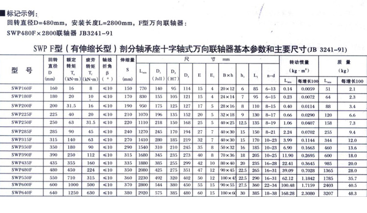 SWP F型(有伸縮長(zhǎng)型)部分軸承座十字軸式萬(wàn)向聯(lián)軸器
