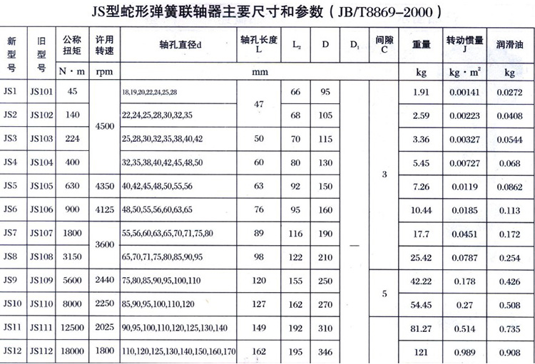 JS系列蛇形彈簧聯(lián)軸器
